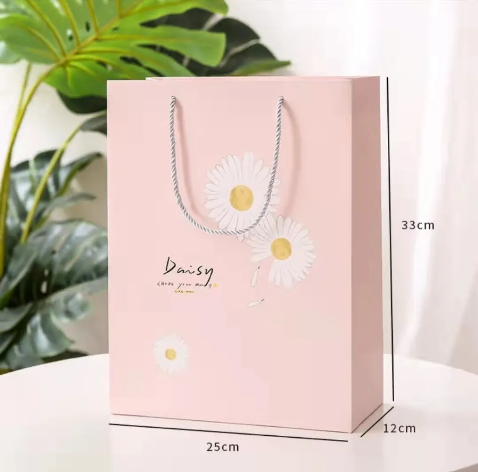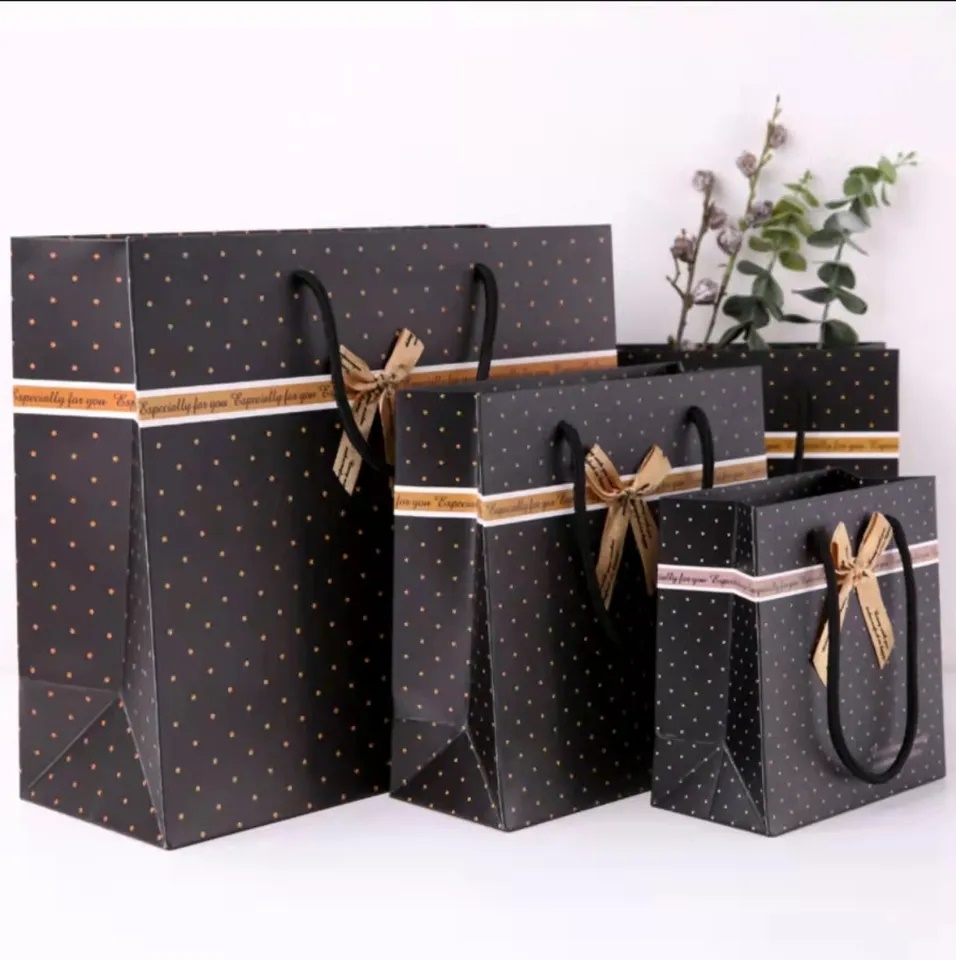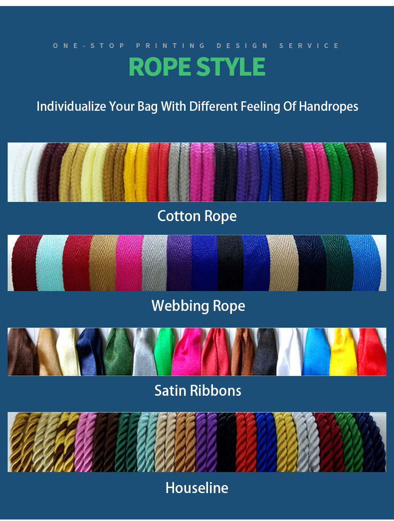 Made with recyclable ivory board paper or kraft paper and could be custom in different sizes and colors as well as printing artwork. Various selection of rope handle makes it easy for taking away all kinds of merchandises and gifts. Reinforced bottom and handle glue results in a carrying capacity up to 5kgs.