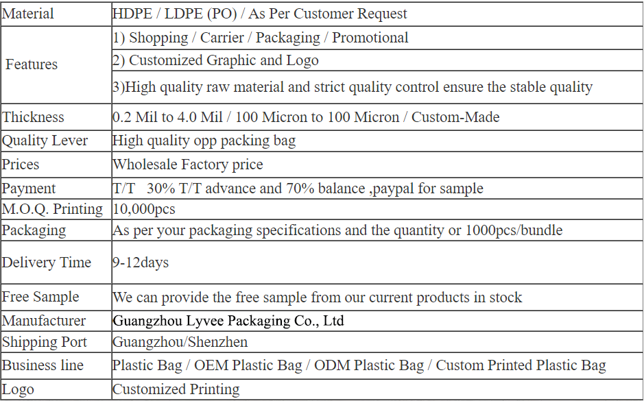 ThisDie-cut LDPE plastic bag is simple and easy for carrying clothing and gifts or any other merchandises, for any events and trade shows for giving away. Custom sizes and printing artwork is available.