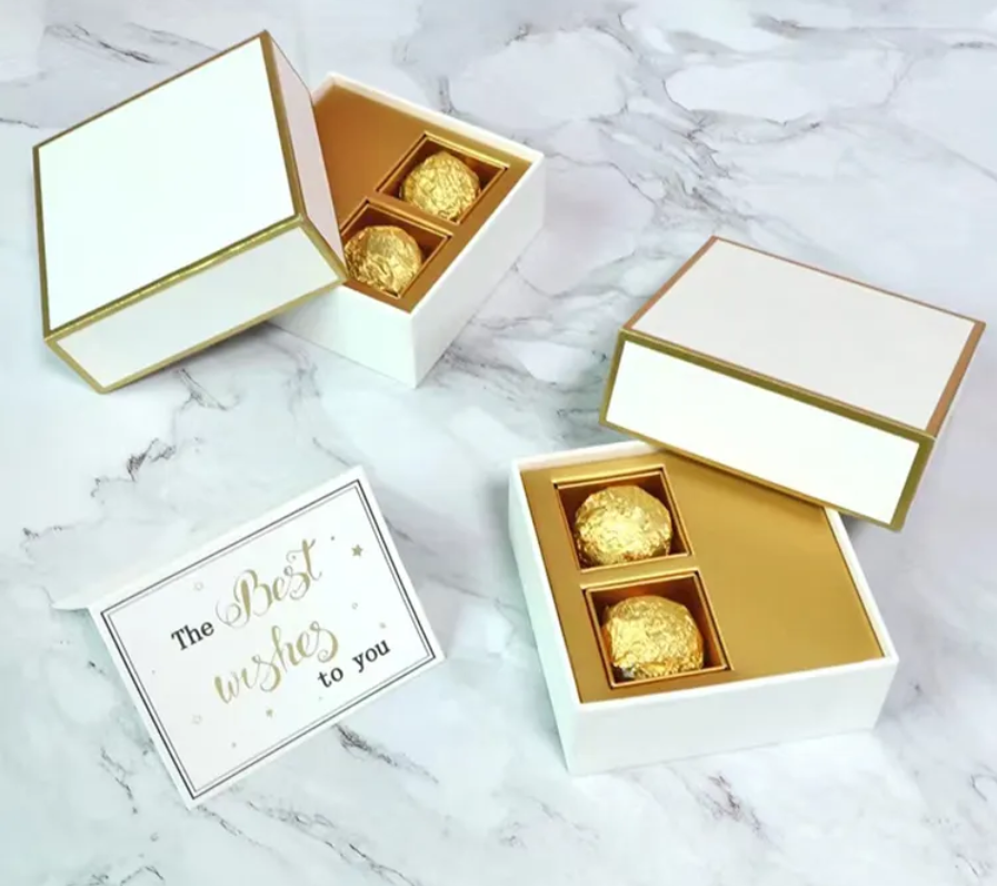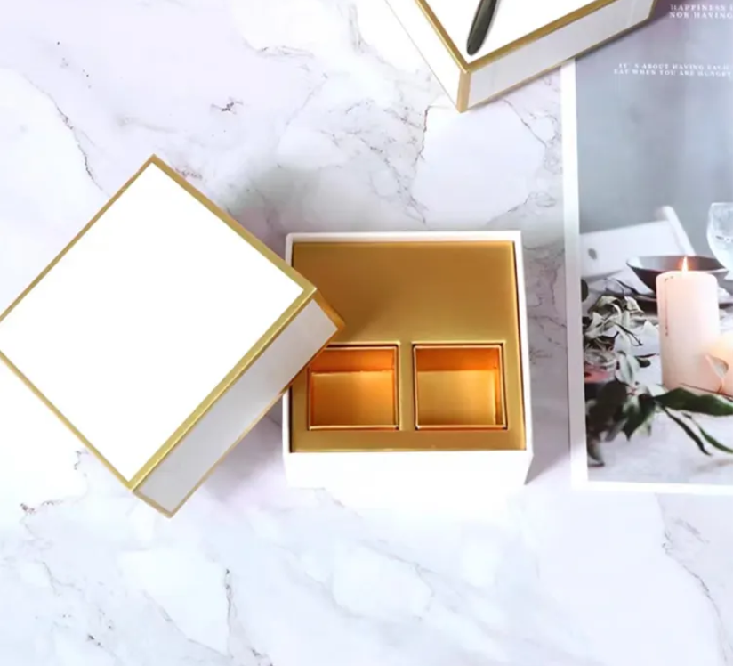 This luxury cardboard box is made of eco-friendly material and could be customed in different sizes and printing artwork. Its luxury looking of gold stamping accents makes the gifts inside a charming looking. You can custom the die-cut inner tray to make it fit for all of your merchandises so as to make them not moving during the shipping.