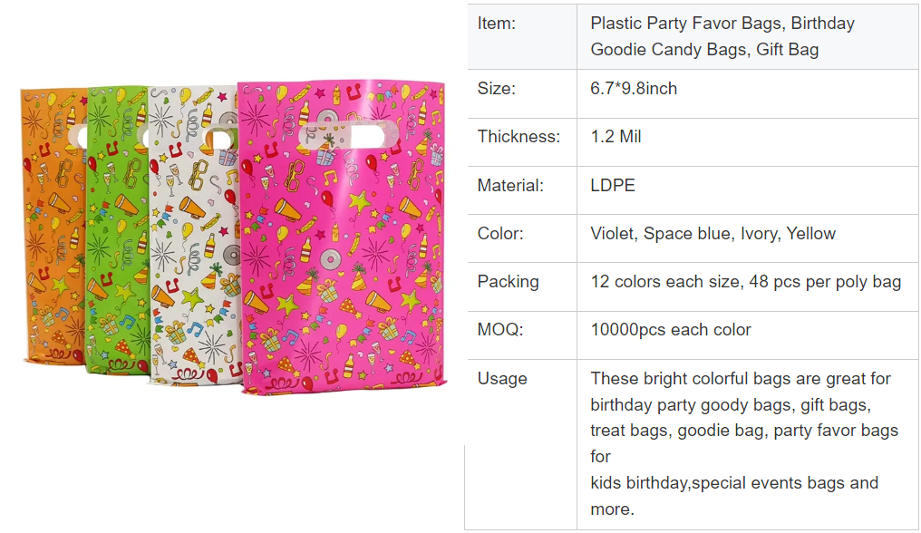 Party Supplies Plastic Party Favors Goody Bag Birthday Gift Bag for Kids