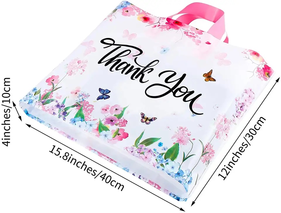 This Extra large LDPE plastic shopping bag is with two strong handles to carry any of your merchandise when shopping or sending gifts. Printed with fashionable artwork makes it popular when taking out. Custom size and printing artwork is available.